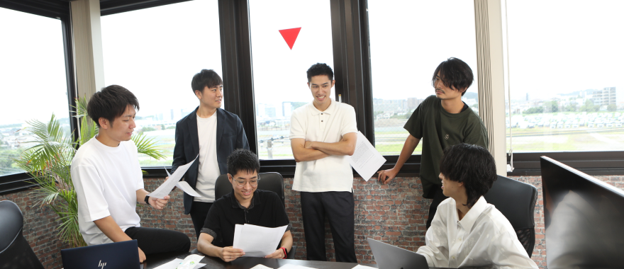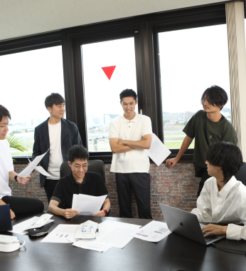 スピード感を持って事業拡大を進めるアルファメイルですが、実は縦割りではなく、プロジェクトごとに協力しあう横断型の組織構造をとっています。自分ひとりの評価ではなく、チーム全体のメンバーの評価につながる奉仕の精神を持つ開拓者を尊重しています。